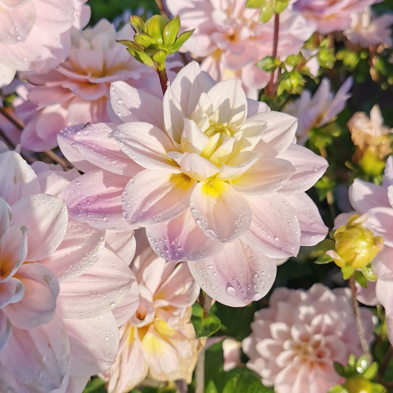Le Dahlia buisson Jardin des Nymphes va vous ravir par sa couleur rose tendre. Particulièrement florifère, ses fleurs de 10 cm de diamètre contrastent parfaitement avec des tiges noires. Dernier né de notre collection, il a été baptisé en septembre 2025 dans le Jardin du Grand Trianon au Château de Versailles. Ce dahlia d’environ 90 cm est idéale pour vos cultures en pots, jardinières et massifs.