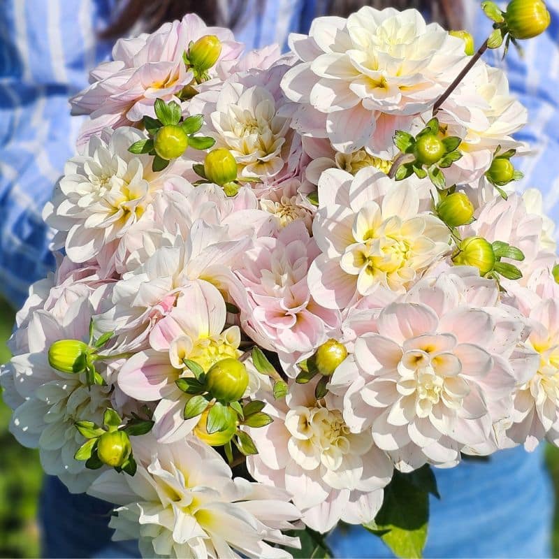 Le Dahlia buisson Jardin des Nymphes va vous ravir par sa couleur rose tendre. Particulièrement florifère, ses fleurs de 10 cm de diamètre contrastent parfaitement avec des tiges noires. Dernier né de notre collection, il a été baptisé en septembre 2025 dans le Jardin du Grand Trianon au Château de Versailles. Ce dahlia d’environ 90 cm est idéal pour vos cultures en pots, jardinières et massifs.