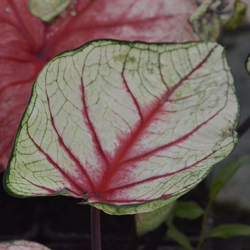 Les Caladiums sont de magnifiques plantes tropicales. Elles sont très appréciées pour les couleurs vives et variées de ses feuilles qui apparaissent entre les mois de mars et décembre. Le Caladium White Queen est une variété originale qui développe un feuillage très décoratif blanc avec des nervures rouge intense au centre et vertes sur les extrémités..