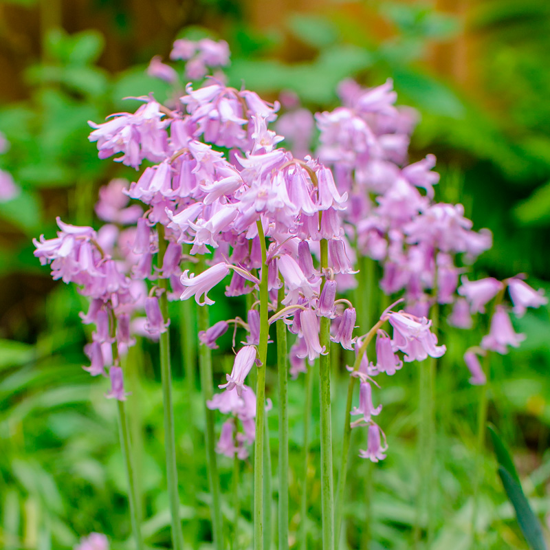 Le Hyacinthoides hispanica Rose (Scilla Campanulata) est une bulbeuse élégante à floraison printanière de 30 à 35 cm de hauteur, qui produit en avril des grappes de petites fleurs en clochettes pendantes de 1 à 2 cm de diamètre au coloris rose violacé. Plantées en sols frais et humifère, idéalement à la mi-ombre, les jacinthes d’Espagne sont très faciles à cultiver, et s’installent rapidement pour former des tapis de fleurs, semblables à des campanules, qui seront du plus bel effet dans des massifs un peu sauvages, en pied d’arbres ou en sous-bois clair.