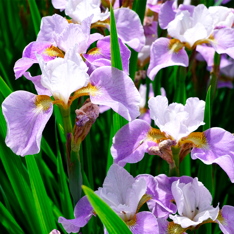 L’Iris de Sibérie est une plante vivace qui a une forme particulière, différente des autres iris car elle n’a pas de crête. Cette plante développe des feuilles longues et étroites. Ses fleurs ont de larges pétales qui leur donne de l’élégance. L’Iris Sibirica Dance ballerine Dance est lavande nuancé au coeur blanc.