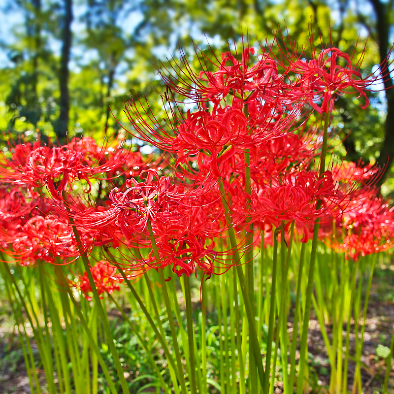 Ce lycoris est très populaire au Japon. C’est une plante bulbeuse spectaculaire en fleur. La culture en pleine terre est à réserver aux climats doux. Avec le temps, il forme de belles touffes de feuilles d’où émergeront en fin d’été ou en début d’automne de grandes fleurs élégantes, rouge vif, ornées de longues étamines. Peu rustique, mais plus robuste que sa cousine la nérine, il apprécie les étés secs, les sols humifères et la mi-ombre.