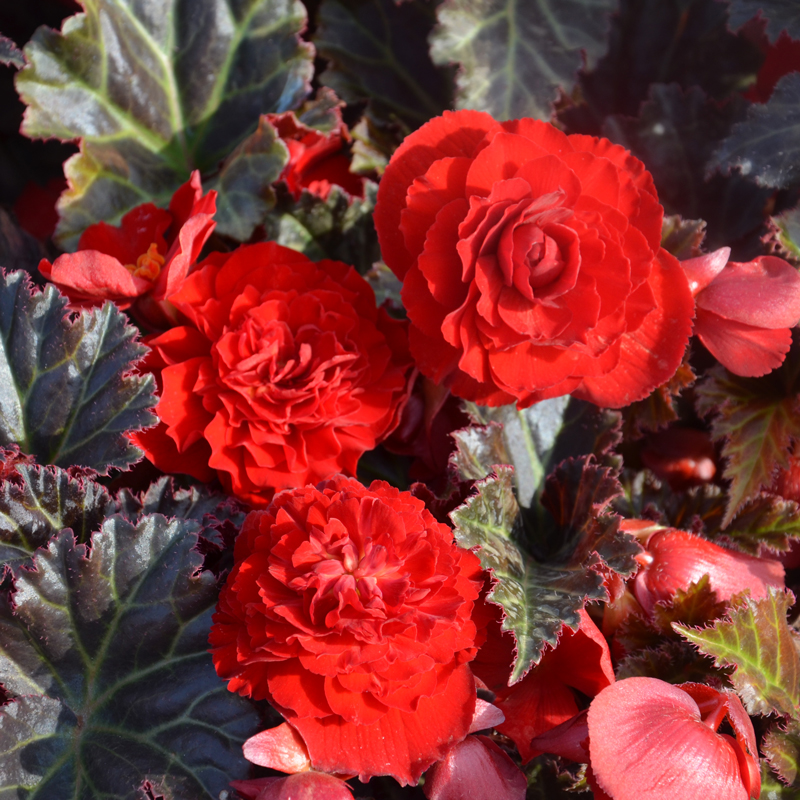 Le bégonia Multiflora La Suisse produit de très nombreuses fleurs aux pétales larges, rouge écarlate, de 10 cm de diamètre, portées sur un feuillage sombre, épais et dense. Avec son port érigé, ce bégonia de 40 cm aux couleurs contrastées est parfaitement adapté à la culture en massif, pot ou jardinière, et est idéal pour fleurir vos espaces mi-ensoleillés.