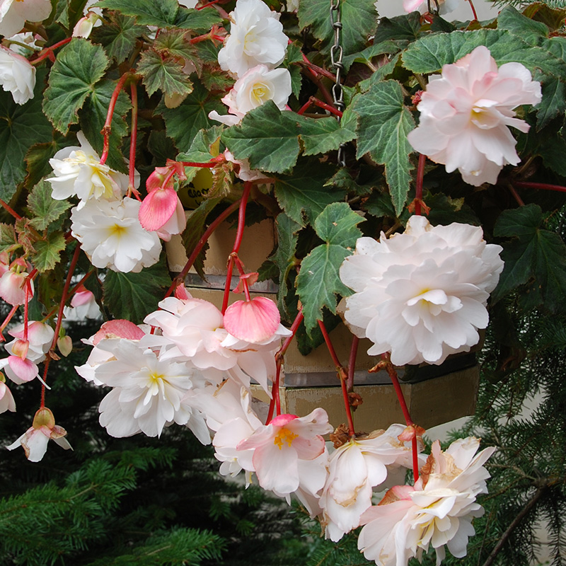 Le bégonia odorata Angélique produit des tiges allongées retombantes sur lesquelles se développent de nombreuses fleurs blanches nuancées de rose, qui dégagent un délicat parfum durant tout l’été et jusqu’aux premières gelées. Ce bégonia de 35 cm crée de vraies cascades fleuries aux teintes délicates, idéales pour fleurir balcons et rebords de fenêtres. Chaque inflorescence mesure environ 8 cm de diamètre. Les bégonias sont des bulbes parfaits pour fleurir vos espaces mi-ensoleillés l’été.