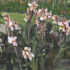 Le Canna Angèle Martin est une variété de 170 cm de haut à l’allure tropicale, qui produit une végétation dense aux feuilles larges de couleur pourpre, et à l’intérieur de laquelle se développent des bouquets de fleurs rose pâle saumoné dès le mois de juillet et jusqu’aux premières gelées. Avec sa végétation haute, ce canna sera idéal en fond de massif varié où il apportera une note douce et graphique à votre jardin. Si vous souhaitez créer des massifs originaux vous pouvez l’associer au dahlia balle ‘Hillcrest Suffusion’ et au dahlia décoratif ‘Pashmina’. Originaire des Antilles, le canna, dont le nom d’origine est « Balisier », a été introduit en Europe au XVIe siècle. Depuis, de nombreuses améliorations ont été apportées aux cannas qui se différencient par la couleur de leurs feuilles et par leur hauteur.