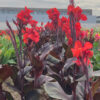 Canna Black Cleopatra est une variété de 120 cm de haut à l’allure tropicale, qui produit une végétation dense aux feuilles larges et pourpres, et à l’intérieur de laquelle se développent des bouquets de fleurs rouge lumineux dès le mois de juillet et jusqu’aux premières gelées. Avec sa végétation haute, ce canna sera idéal en fond de massif varié où il apportera une note chaude et graphique à votre jardin.