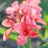 Le Canna Extase est une variété de 110 cm de haut à l’allure tropicale, qui produit une végétation dense aux feuilles larges de couleur verte, et à l’intérieur de laquelle se développent des bouquets de fleurs rose cyclamen dès le mois de juillet et jusqu’aux premières gelées. Avec sa végétation haute, ce canna sera idéal en fond de massif varié où il apportera une note douce et graphique à votre jardin. Si vous souhaitez créer des massifs originaux vous pouvez l’associer au dahlia pompon ‘Eclaireur’ et au dahlia décoratif ‘Normandie’. Originaire des Antilles, le canna, dont le nom d’origine est « Balisier », a été introduit en Europe au XVIe siècle. Depuis, de nombreuses améliorations ont été apportées aux cannas qui se différencient par la couleur de leurs feuilles et par leur hauteur.