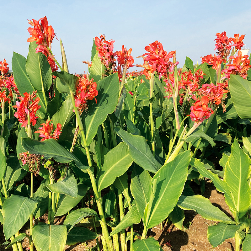 Le canna est une plante tropicale qui aime les expositions ensoleillées et chaudes, et qui devra être plantée en conditions hors gel. Les rhizomes de cannas peuvent être démarrés en pot à partir du mois de février sous abri pour une culture plus précoce, ou directement en pleine terre à partir du mois de mai lorsque les gelées ne sont plus à craindre. Plantez-les dans une terre riche, fraiche et bien drainée, idéalement enrichie de matière organique, et dans un endroit protégé du vent et bien ensoleillé. Après avoir préparé et ameubli votre sol, déposez votre rhizome à 15 cm de profondeur environ, en lui réservant environ 50 cm de distance en tous sens. Recouvrez ensuite le rhizome d’environ 5 cm de terre et arrosez généreusement après la plantation.