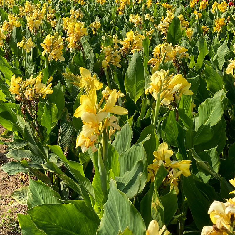 Le Canna Oiseau d’Or est une variété de 110 cm de haut à l’allure tropicale, qui produit une végétation dense aux feuilles larges de couleur verte, et à l’intérieur de laquelle se développent des bouquets de fleurs jaune d’or dès le mois de juillet et jusqu’aux premières gelées. Avec sa végétation haute, ce canna sera idéal en fond de massif varié où il apportera une note radieuse et graphique à votre jardin. Si vous souhaitez créer des massifs originaux vous pouvez l’associer au dahlia décoratif ‘Bagkok violet’ et au dahlia pompon ‘Artaban’. Originaire des Antilles, le canna, dont le nom d’origine est « Balisier », a été introduit en Europe au XVIe siècle. Depuis, de nombreuses améliorations ont été apportées aux cannas qui se différencient par la couleur de leurs feuilles et par leur hauteur.