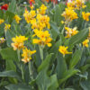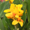 Le Canna nain Caballero est une création Ernest Turc de 60 cm de haut à l’allure tropicale, qui produit une végétation dense aux feuilles larges de couleur verte, et à l’intérieur de laquelle se développent des bouquets de fleurs or piquetées de rouge dès le mois de juillet et jusqu’aux premières gelées. Avec sa végétation compacte, ce canna nain sera idéal en massif varié où il apportera une note lumineuse et graphique, mais conviendra également parfaitement à une plantation en grand pot pour fleurir vos balcons et terrasses. Si vous souhaitez créer des massifs originaux vous pouvez l’associer à l’alstrœmère ‘Douceur d’Automne’ et au dahlia ‘Septembre à Paris’. Originaire des Antilles, le canna, dont le nom d’origine est « Balisier », a été introduit en Europe au XVIe siècle. Depuis, de nombreuses améliorations ont été apportées aux cannas qui se différencient par la couleur de leurs feuilles et par leur hauteur.
