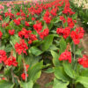 Le Canna nain Flamenco est une création Ernest Turc de 60 cm de haut à l’allure tropicale, qui produit une végétation dense. Ses larges feuilles laissent apparaitre des bouquets de fleurs rouge orangé dès le mois de juillet et jusqu’aux premières gelées. Avec sa végétation compacte, ce canna nain sera idéal en massif varié où il apportera une note vibrante et graphique. Il conviendra également parfaitement à une plantation en grand pot pour fleurir vos balcons et terrasses. Si vous souhaitez créer des massifs originaux vous pouvez l’associer à l’alstroemère ‘Jupiter’ et au dahlia ‘Tequila Sunrise’. Originaire des Antilles, le canna, dont le nom d’origine est « Balisier », a été introduit en Europe au XVIe siècle. Depuis, de nombreuses améliorations ont été apportées aux cannas qui se différencient par la couleur de leurs feuilles et par leur hauteur.