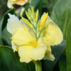 Le Canna nain Puck est une plante de 60 cm de haut à l’allure tropicale, qui produit une végétation dense aux feuilles larges de couleur verte, et à l’intérieur de laquelle se développent des bouquets de fleurs jaune soufré piqueté rose dès le mois de juillet et jusqu’aux premières gelées. Avec sa végétation compacte, ce canna nain sera idéal en massif varié où il apportera une note lumineuse et graphique, mais conviendra également parfaitement à une plantation en grand pot pour fleurir vos balcons et terrasses. Si vous souhaitez créer des massifs originaux vous pouvez l’associer à l’alstroemère ‘Junon’ et au dahlia ‘Peachy’. Originaire des Antilles, le canna, dont le nom d’origine est « Balisier », a été introduit en Europe au XVIe siècle. Depuis, de nombreuses améliorations ont été apportées aux cannas qui se différencient par la couleur de leurs feuilles et par leur hauteur.