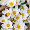 Le Crocus chrysanthus Ard Schenk est une jolie petite bulbeuse à floraison précoce de 8 cm de hauteur, qui produit dès le mois de février mars des petites fleurs en forme de calice de 3 cm de diamètre au coloris blanc cœur jaune.