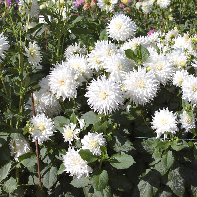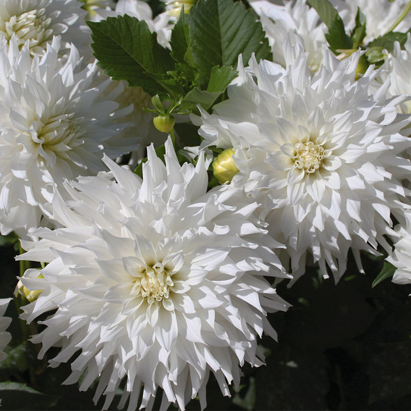 Le Dahlia décoratif Albion produit de grosses fleurs blanches d’environ 16 cm de diamètre. Ses pétales ont la particularité d’être légèrement recourbés aux extrémités. Cette création Ernest Turc de 110 cm de haut à la floraison généreuse sera idéale pour apporter de la hauteur et de la pureté à vos massifs. Les Dahlias décoratifs présentent de grandes fleurs doubles aux pétales larges et aplatis.
