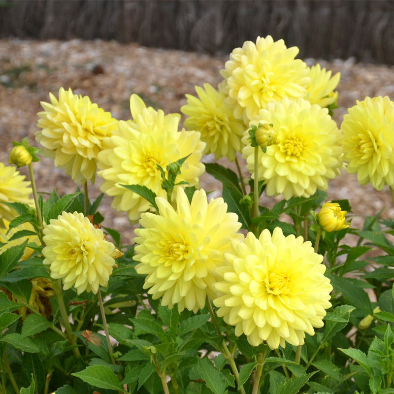 Le Dahlia décoratif Copacabana est une variété d’un magnifique jaune éclatant, qui a été créée par Ernest TURC en 2016. Ce dahlia très florifère produit de nombreuses fleurs très régulières d’environ 12 cm de diamètre. Du haut de ses 100 cm, il apportera structure et lumière à vos massifs d’été. A l’intérieur, vous pourrez profiter de ce rayon de soleil dans vos bouquets du mois de juillet aux premières gelées.