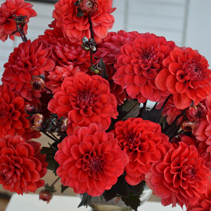 Originaire d’Amérique centrale et principalement du Mexique, le dahlia, utilisé autrefois par les Aztèques comme plante comestible, est importé en Europe au 18ème siècle pour remplacer la pomme de terre. Sans succès… ses qualités décoratives et ornementales ont vite supplanté ses propriétés nutritives, surtout lorsque les premières fleurs doubles de type cactus ont été hybridées. Aujourd’hui, ce sont plus de quarante mille variétés hybrides qui ont été obtenues, pour le plus grand bonheur des amateurs passionnés, des collectionneurs, et des jardiniers. Le genre dahlia offre une diversité fantastique de formes, de hauteurs et de coloris. Il ne lui manque que le parfum… et le pigment bleu pour compléter la gamme de ses coloris !