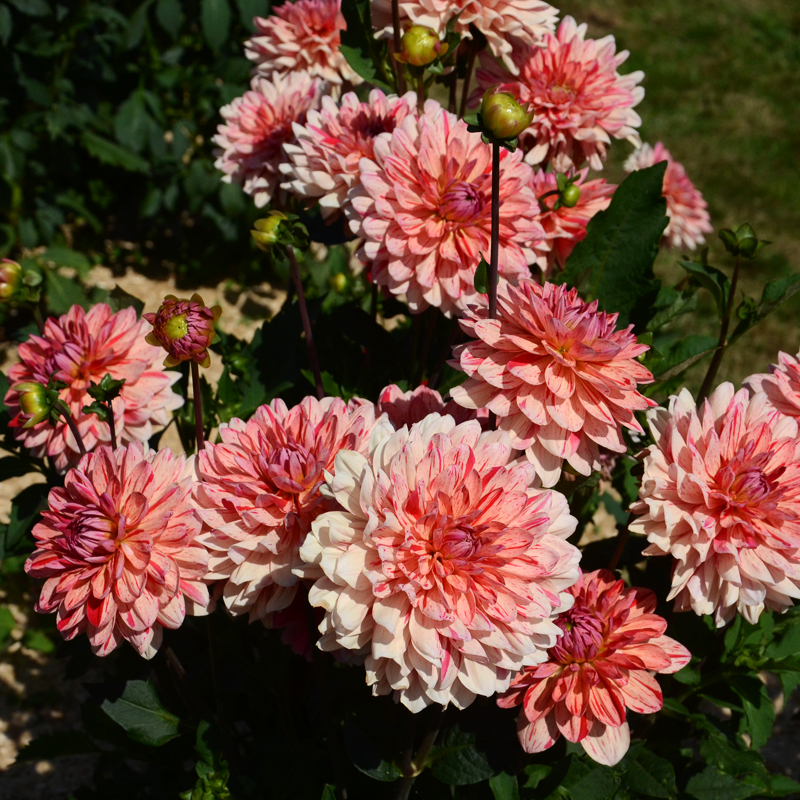 Le Dahlia Décoratif nain Zanzibar est une magnifique variété aux fleurs de 13 cm de diamètre, au coloris particulièrement doux, saumon strié de rouge rose. Primé au concours international des dahlias de Paris en 2016, ce dahlia délicat de 70 cm de haut apportera une touche d’exotisme à vos pots et massifs, du mois de juillet aux premières gelées. Avec ses longues tiges bien érigées, il est également idéal pour la confection de bouquets généreux aux couleurs tendres qui sublimeront votre intérieur.