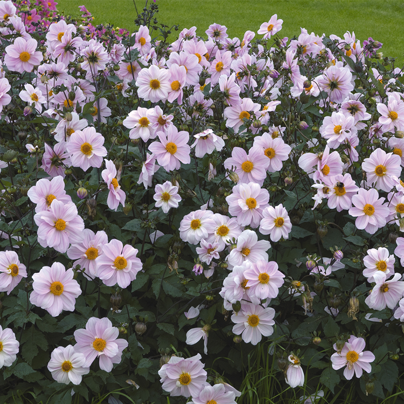 Le Dahlia nain Simple Cory produit de grandes fleurs de 10 cm de diamètre, aux larges pétales rose doux. Avec son feuillage vert foncé qui fait sa particularité, il est idéal en massif bas, en association par exemple au Dahlia nain simple ‘Innocence’, pour un duo tout en douceur et en légèreté. Naturellement compacte, cette création Ernest Turc de 80 cm de haut, qui ne nécessite pas de tuteurage, peut également être plantée en pot pour sublimer vos balcons et terrasses.
