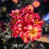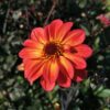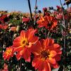 Le Dahlia nain simple Flame and Black produit de belles fleurs de pivoine au coeur noir de 8 cm de diamètre, orange rouge au revers magenta qui contrastent magnifiquement sur un sublime feuillage noir. Cette création Ernest Turc de 2025 mesure environ 75 cm de hauteur, et pourra aussi bien être plantée en massif et bordure qu’en grand pot grâce à son port compacte. Ce dahlia, comme tous ceux de la famille des nains simples, est mellifère et attirera papillons et abeilles qui se régaleront de son pollen.