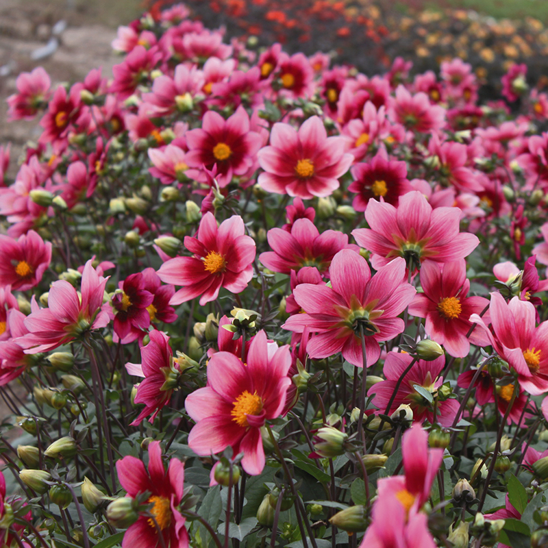 Le Dahlia nain Simple Héroïne Bio séduit par sa floribondité et la taille de ses fleurs de près de 10 cm de diamètre. Cette création Ernest Turc apportera de la couleur et de la légèreté à vos massifs et à vos bouquets. Ses fleurs simples sont tout simplement envoûtantes avec leur halo framboise qui contraste parfaitement avec le rose soutenu des extrémités des pétales. Présenté au concours international du Dahlia de Paris, le Dahlia Héroïne a obtenu 3 prix en 2016, dont le prix de la presse. Il a également obtenu le prix “Queen of the Dahlia” en 2019. Du haut de ses 70 cm, il est idéal en massifs et bordures, grâce à son feuillage vert foncé et ses tiges pourpres. De taille moyenne, ce dahlia peut également être cultivé en grands pots pour sublimer vos balcons et terrasses durant tous les mois d’été, et jusqu’aux premières gelées. Avec son coeur chargé en pollen, il est particulièrement attractif pour les insectes butineurs du jardin : un vrai atout biodiversité !