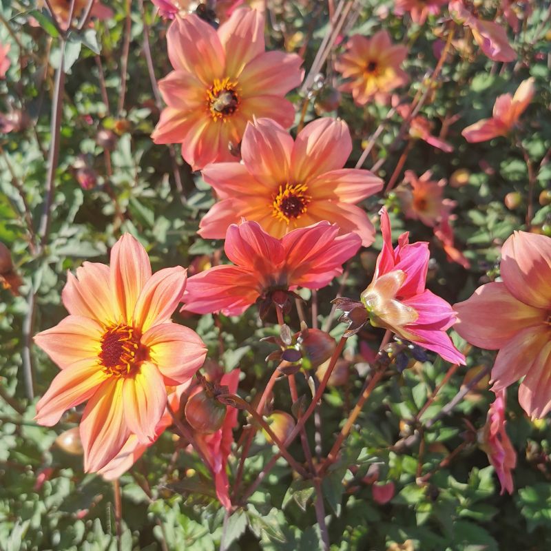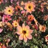Le Dahlia nain simple Moonflower séduit par sa floribondité et la taille de ses fleurs de près de 10 cm de diamètre. Cette création Ernest Turc 2024 apportera de la couleur et de la légèreté à vos massifs et à vos bouquets. Ses fleurs simples sont tout simplement envoûtantes dans des tons rose orangés qui se dégradent vers le jaune au centre et le revers rose des pétales. De taille moyenne, ce dahlia peut également être cultivé en grands pots pour sublimer vos balcons et terrasses durant tous les mois d’été, et jusqu’aux premières gelées. Avec son coeur chargé en pollen, il est particulièrement attractif pour les insectes butineurs du jardin : un vrai atout biodiversité !