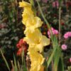 Le Glaïeul à Grandes Fleurs Bra Val produit de superbes hampes florales de 120 cm de haut aux nombreux fleurons jaunes clairs. Cette variété majestueuse est idéale en bordure ou en massif pour donner de la hauteur à vos espaces et compositions végétales. Fleur à couper par excellence, ils permettent également de composer de somptueux bouquets hauts et très graphiques. Utilisés par les Grecs et les Romains, les glaïeuls ont connu une véritable évolution grâce à d’importants travaux d’hybridation.