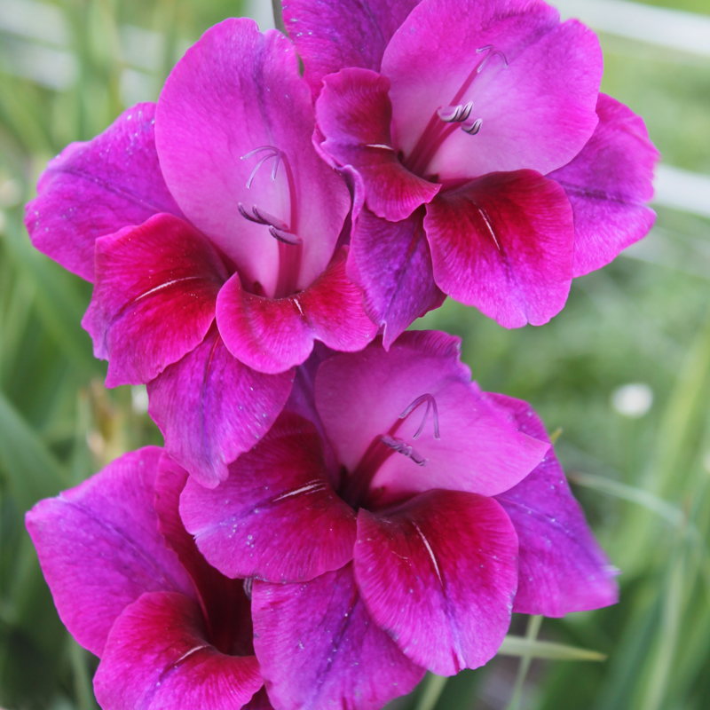 Le Glaïeul à Grandes Fleurs Velvet Eyes produit de superbes hampes florales de 120 cm de haut aux nombreux fleurons violet pourpré au coeur fuchsia. Cette variété majestueuse est idéale en bordure ou en massif pour donner de la hauteur à vos espaces et compositions végétales. Fleur à couper par excellence, ils permettent également de composer de somptueux bouquets hauts et très graphiques. Utilisés par les Grecs et les Romains, les glaïeuls ont connu une véritable évolution grâce à d’importants travaux d’hybridation.