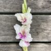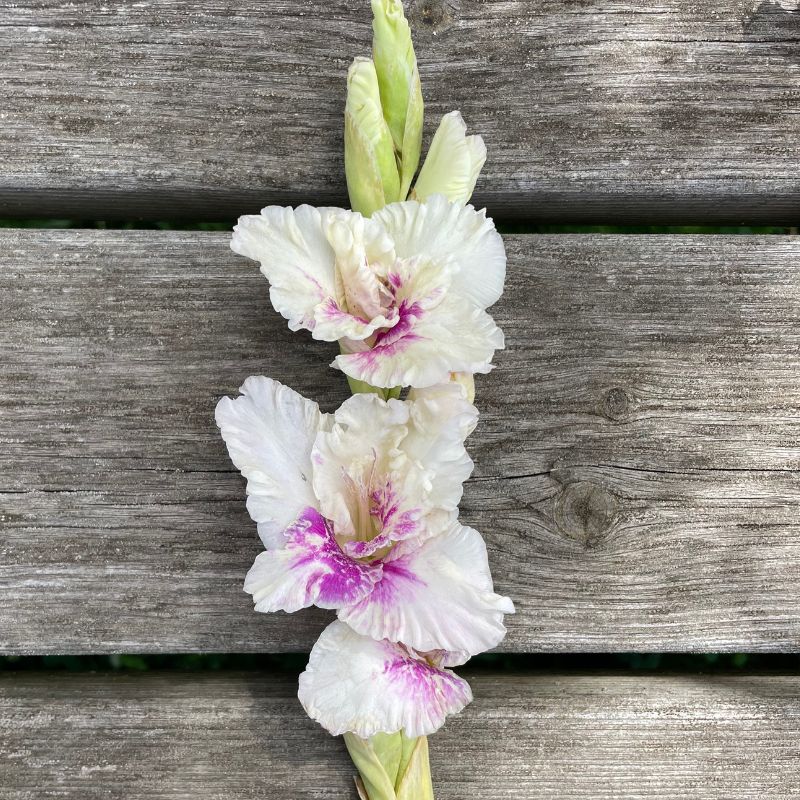 Le Glaïeul à Grandes Fleurs Violette Heart produit de superbes hampes florales de 120 cm de haut aux nombreux fleurons blancs au coeur violet. Cette variété majestueuse est idéale en bordure ou en massif pour donner de la hauteur à vos espaces et compositions végétales. Fleur à couper par excellence, ils permettent également de composer de somptueux bouquets hauts et très graphiques. Utilisés par les Grecs et les Romains, les glaïeuls ont connu une véritable évolution grâce à d’importants travaux d’hybridation.
