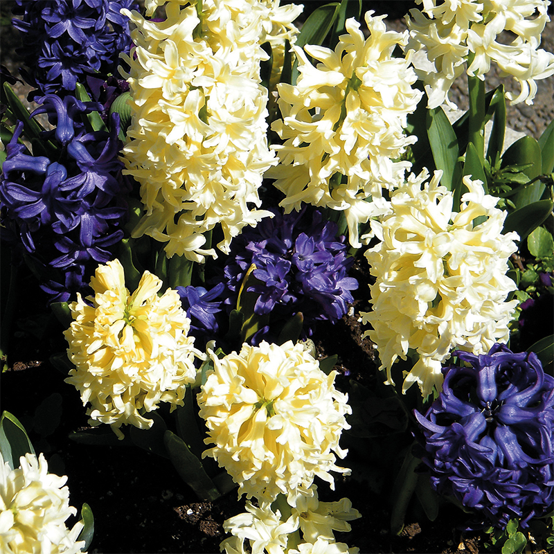 L’assortiment de jacinthes orientales Rivage va donner une touche parfumée à votre printemps ! Du haut de leurs 20 à 25 cm de hauteur, ces jacinthes produisent en mars avril des inflorescences droites de 8 à 10 cm de diamètre aux multiples fleurons en étoiles en camaïeu de bleu et de jaune. Avec leur parfum envoutant et leur floraison précoce, les jacinthes offrent les premières notes florales de l’arrivée du printemps. Avec leur faible hauteur, elles sont particulièrement adaptées au fleurissement des potées fleuries et jardinières pour illuminer les balcons et terrasses, mais également des massifs et bordures où elles feront sensation associées à des plantes bisannuelles et d’autres bulbeuses à floraison précoce comme les crocus à grandes fleurs, les tulipes fosteriana ou encore les muscaris armeniacum.