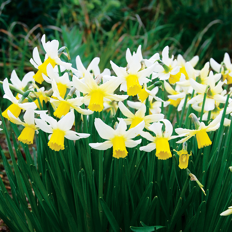 Plantés en pleine terre, les bulbes de narcisses n’ont pas besoin d’entretien particulier, mais juste d’un peu de patience car ils mettront quelques semaines avant de sortir de terre et d’illuminer vos massifs aux premiers beaux jours du printemps. Ils ne nécessitent ni engrais ni arrosage en début de culture, car ils fleurissent sur leurs réserves et bénéficient de l’eau qui tombe naturellement du ciel à cette saison. Veillez simplement à maintenir la terre fraiche en cours de floraison, particulièrement si une période de sécheresse intervient au moment de l’épanouissement des fleurs. Après la floraison, supprimez les fleurs fanées pour éviter que les bulbes ne s’épuisent en produisant des graines, mais prenez soin de ne pas couper le feuillage avant qu’il ait fini de jaunir naturellement. Après avoir coupé les fleurs, un apport d’engrais pourra également aider le bulbe à reconstituer ses réserves pour refleurir généreusement l’année suivante. Les narcisses sont rustiques et peuvent rester en terre d’une année sur l’autre. Ils se naturalisent également très facilement, particulièrement les narcisses botaniques qui formeront rapidement des touffes compactes et denses