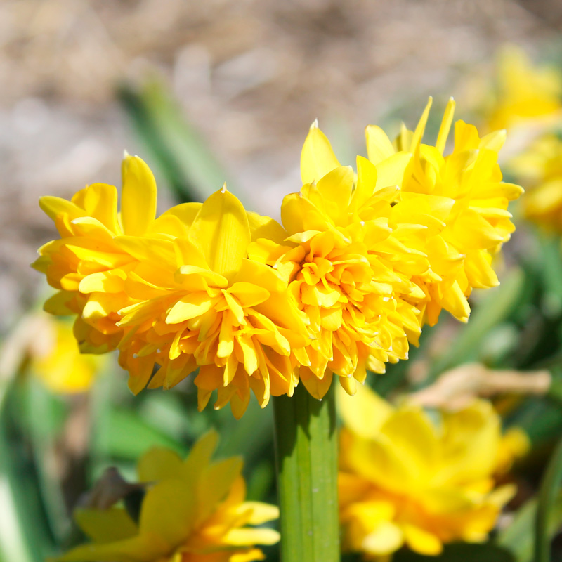 Le Narcisse Cyclamineus Tête Bouclée est une jolie petite variété de 20 cm de hauteur, qui produit en mars avril un bouquet de 2 à 3 fleurs à l’aspect frisoté de 5 cm de diamètre au coloris jaune d’or.