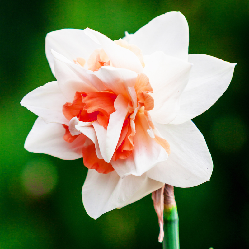 Le Narcisse Double Replete est une magnifique bulbeuse de 45 cm de hauteur, qui produit en avril des fleurs à l’aspect frisoté de 8 cm de diamètre au coloris blanc à la coupe rose saumoné.