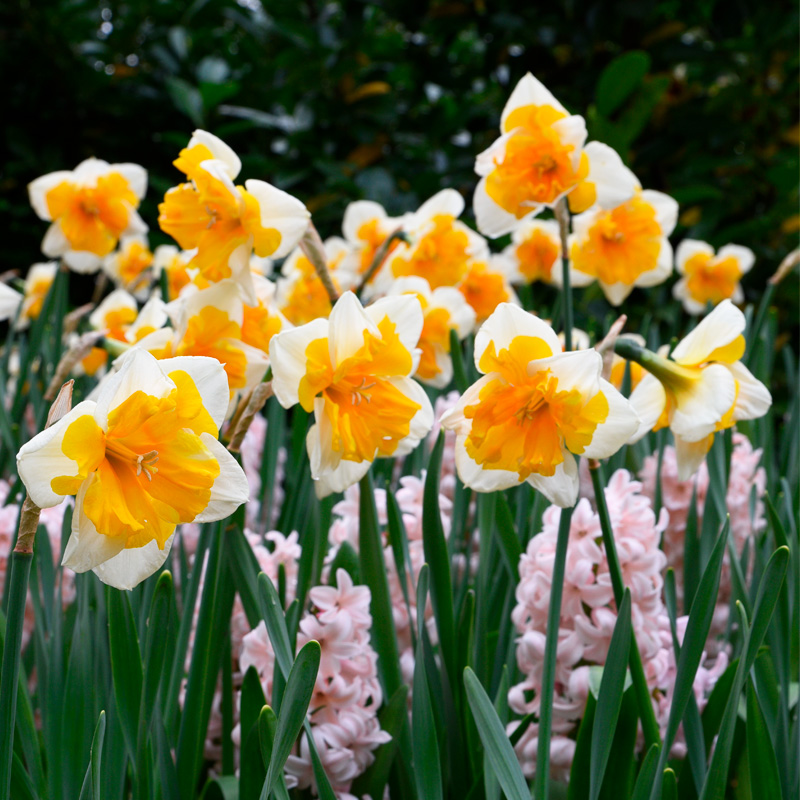Le Narcisse Decasplit Orangery est une magnifique bulbeuse de 45 cm de hauteur, qui produit en mars avril des fleurs larges à la couronne évasée et fendue de 8 cm de diamètre au coloris blanc à coupe jaune orangé. Planté en groupe resserré, ce narcisse très original à la floraison légère sera spectaculaire en massif ou en bordure, mais aussi en vase où il composera de magnifiques bouquets printaniers. En pot ou jardinière, cette variété sublimera vos balcons et terrasses en association avec d’autres bulbeuses à floraison hâtive comme les tulipes Triomphe, les muscaris ou les jacinthes orientales. Une chose est sûre, ces narcisses lumineux à la floraison durable signeront l’arrivée du printemps au jardin !