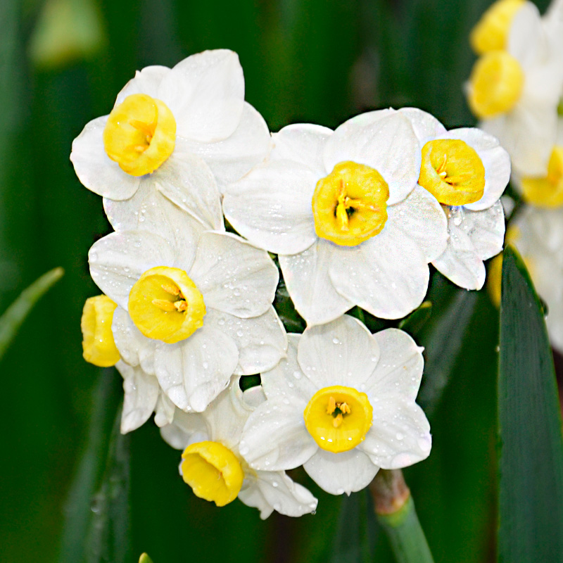 Le Narcisse Pluriflore Avalanche est une jolie bulbeuse de 45 cm de hauteur délicatement parfumée, qui produit sur chaque tige en mars avril un bouquet de 10 à 15 petites fleurs de 3 cm de diamètre au coloris blanc à la coupe jaune paille. Planté en groupe resserré, ce narcisse généreux sera spectaculaire en massif ou en bordure, mais aussi en vase où il composera de magnifiques bouquets printaniers. En pot ou jardinière, cette variété sublimera vos balcons et terrasses en association avec d’autres bulbeuses à floraison hâtive comme les tulipes Triomphe, les muscaris ou les jacinthes orientales. Une chose est sûre, ces narcisses lumineux à la floraison durable signeront l’arrivée du printemps au jardin !