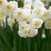 Le Narcisse Pluriflore Bridal Crown est une jolie bulbeuse de 40 cm de hauteur délicatement parfumée, qui produit sur chaque tige en avril un bouquet de 4 à 5 petites fleurs doubles de 4 cm de diamètre au coloris blanc crème au cœur jaune orangé. Planté en groupe resserré, ce narcisse généreux sera spectaculaire en massif ou en bordure, mais aussi en vase où il composera de magnifiques bouquets printaniers. En pot ou jardinière, cette variété sublimera vos balcons et terrasses en association avec d’autres bulbeuses à floraison hâtive comme les tulipes Triomphe, les muscaris ou les jacinthes orientales. Une chose est sûre, ces narcisses lumineux à la floraison durable signeront l’arrivée du printemps au jardin !
