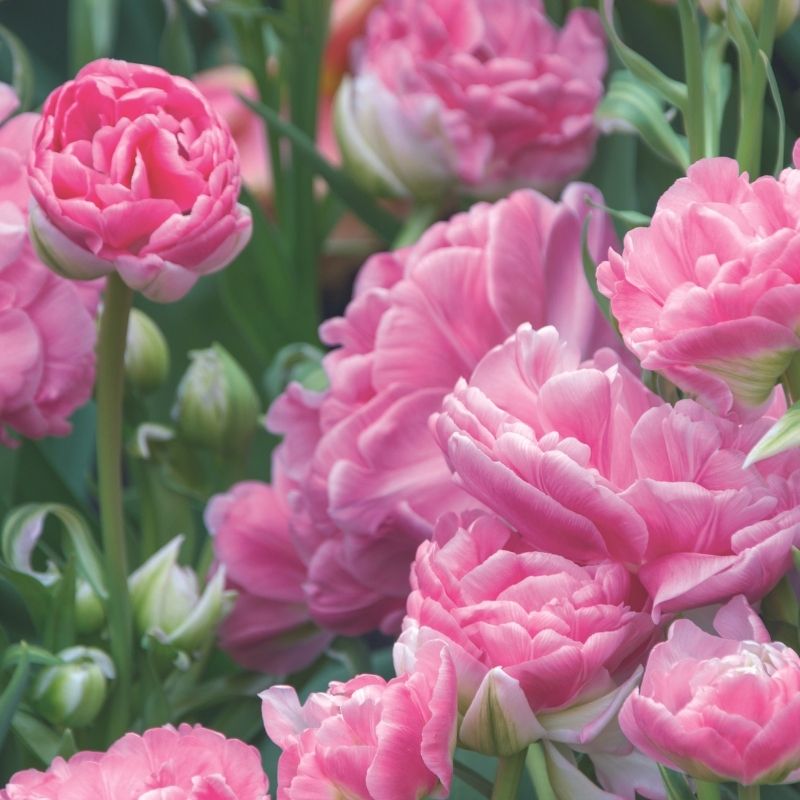 La tulipe double tardive Arosa est une jolie bulbeuse de 45 cm de hauteur qui s’épanouit fin avril début mai, en dévoilant une floraison double et spectaculaire de 12 cm de diamètre, au coloris rose tendre et vert à la base .