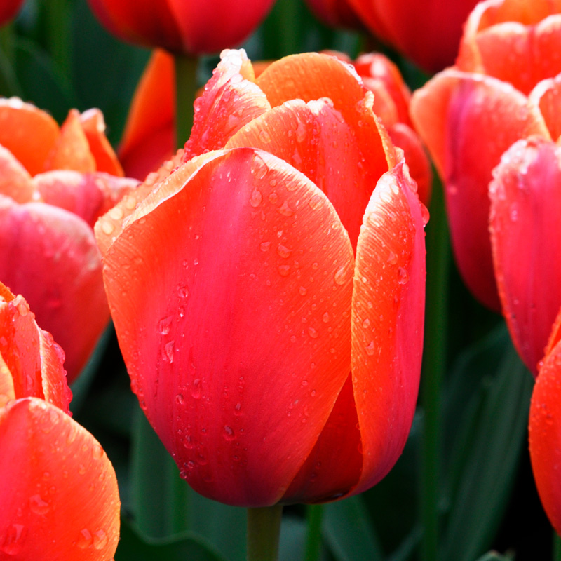 La tulipe Darwin Hybride Ad Rem est une grande bulbeuse de 55 cm de hauteur qui s’épanouit fin avril début mai, en dévoilant une floraison en coupe large de 8 cm de diamètre au coloris rouge orangé finement bordé de jaune. Avec sa grande tige bien droite et solide, elle sera sublime en massif ou plate-bande, pour créer une tache de couleur spectaculaire ou pour donner de la hauteur de manière plus diffuse et naturelle à une composition de vivaces de printemps ou de bisannuelles. En grand pot ou bac, elle sublimera vos balcons et terrasses en association avec d’autres bulbeuses à floraison printanière comme les muscaris ou les narcisses grande coupe. Fleur coupée par excellence, cette tulipe Darwin hybride sera sublime en vase et fera entrer élégance et fraicheur printanière dans votre intérieur.