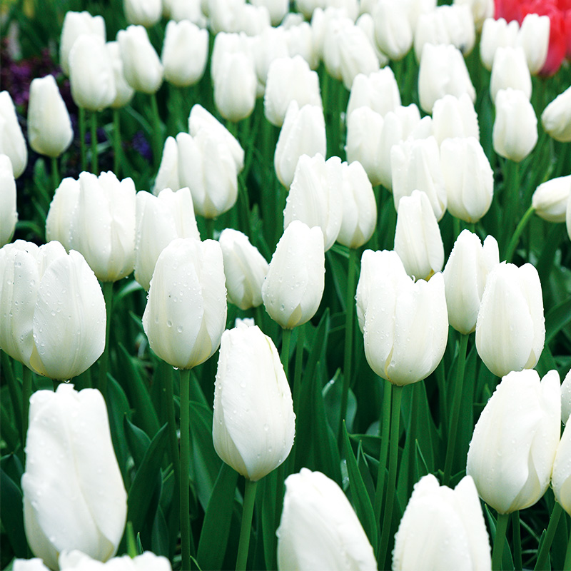 La tulipe Darwin Hybride Hakuun est une grande bulbeuse de 50 cm de hauteur qui s’épanouit fin avril début mai, en dévoilant une floraison en coupe large de 8 cm de diamètre au coloris blanc pur brillant.