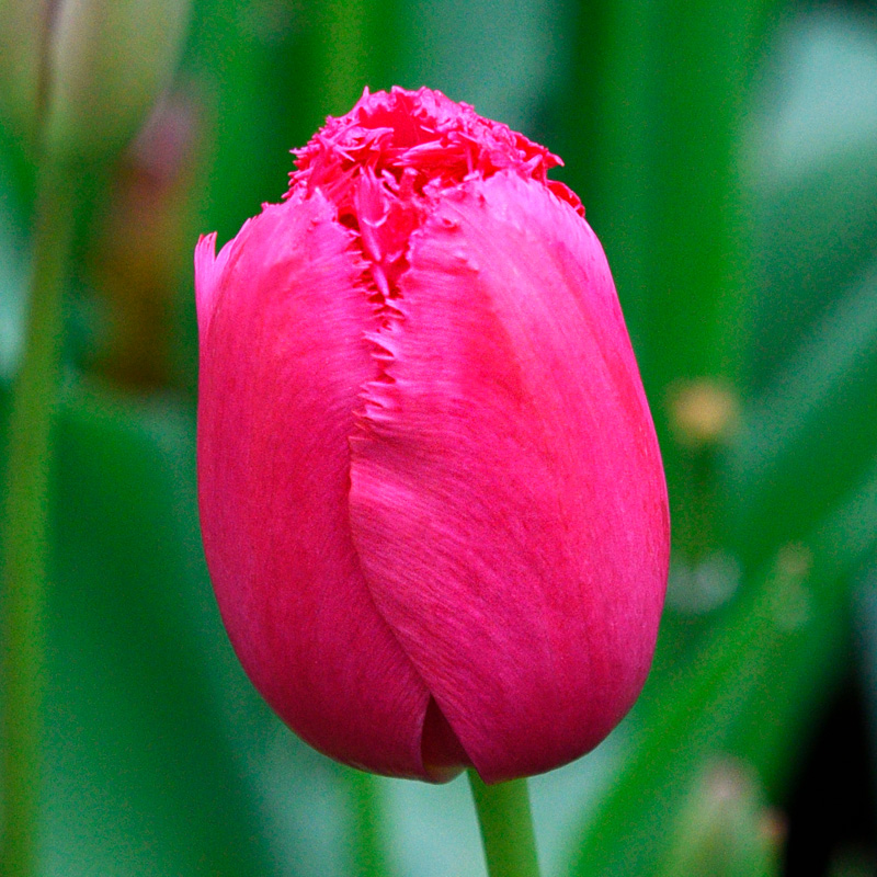 La tulipe dentelle Burgundy Lace est une bulbeuse élégante et originale de 65 cm de hauteur qui s’épanouit fin avril début mai, en dévoilant une floraison aux pétales ciselés de 7 cm de diamètre, au coloris rose carminé profond.