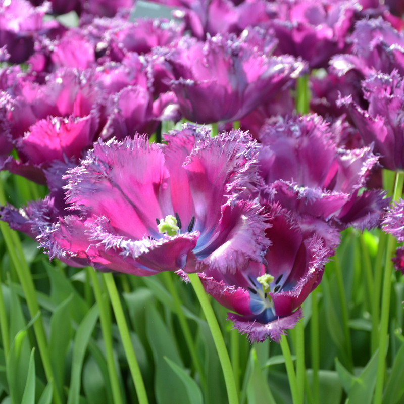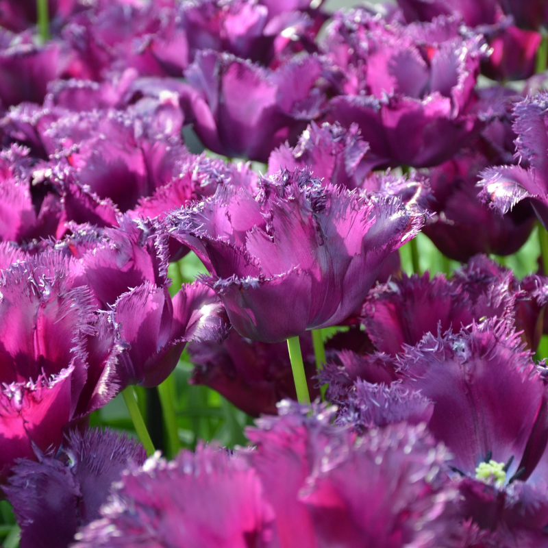 La tulipe dentelle Gorilla est une bulbeuse élégante et originale de 50 cm de hauteur qui s’épanouit en avril mai, en dévoilant une floraison aux pétales ciselés de 7 cm de diamètre, au coloris violet pourpré. Avec sa forme découpée, elle sera sublime en massif ou plate-bande, pour créer une tache de couleur spectaculaire ou pour donner de la hauteur de manière plus diffuse et naturelle à une composition de vivaces de printemps ou de bisannuelles. En grand pot ou bac, elle sublimera vos balcons et terrasses en association avec d’autres bulbeuses à floraison printanière comme les narcisses à grande coupe ou les anémones blanda. En vase, cette tulipe dentelle fera entrer une note sophistiquée et chic dans votre intérieur.