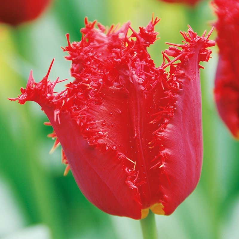 La tulipe dentelle Versaci est une bulbeuse élégante et originale de 45 cm de hauteur qui s’épanouit fin avril début mai, en dévoilant une floraison aux pétales ciselés de 7 cm de diamètre, au coloris rouge foncé brillant très intense.