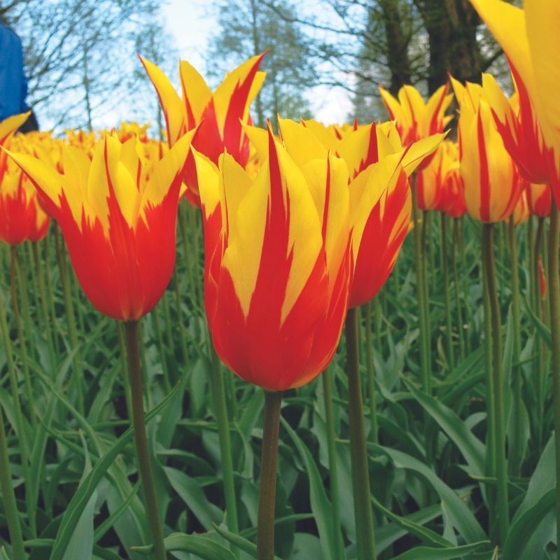 La tulipe fleur de lis Firework est une jolie bulbeuse élancée et graphique de 45 cm de hauteur, qui s’épanouit fin avril début mai, en dévoilant une floraison élégante et longiligne de 8 cm de diamètre, au coloris jaune vif flammé vermillon. Avec sa forme étoilée et longiligne, elle sera magnifique en massif ou plate-bande, pour créer une tache de couleur spectaculaire ou pour donner de la hauteur de manière plus diffuse et naturelle à une composition de vivaces de printemps ou de bisannuelles. En grand pot ou bac, elle sublimera vos balcons et terrasses en association avec d’autres bulbeuses à floraison printanière comme les narcisses à grande coupe ou les anémones blanda. Fleur coupée par excellence, cette magnifique tulipe à l’allure élancée composera de sublimes bouquets et fera entrer une note sophistiquée et élégante dans votre intérieur.
