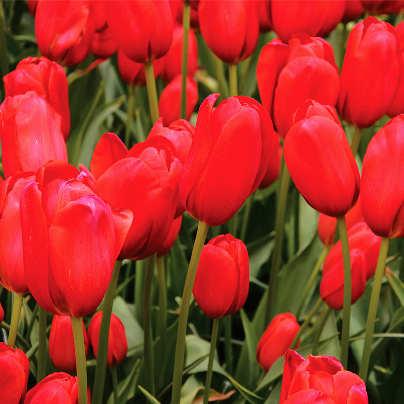 La tulipe simple tardive Kingsblood est une très grande bulbeuse de 60 cm de hauteur, qui s’épanouit fin avril début mai, en dévoilant une floraison en coupe large de 8 cm de diamètre, au coloris rouge cardinal.