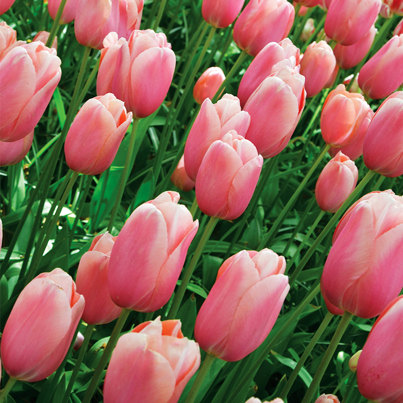 La tulipe simple tardive Menton est une très grande bulbeuse de 65 cm de hauteur, qui s’épanouit fin avril début mai, en dévoilant une floraison en coupe large de 8 cm de diamètre, au coloris rose saumoné nuancé d’orange abricot. Avec sa grande tige bien droite et solide, cette variété sculpturale sera sublime en massif ou plate-bande, pour créer une tache de couleur spectaculaire ou pour donner de la hauteur de manière plus diffuse et naturelle à une composition de vivaces de printemps ou de bisannuelles. En grand pot ou bac, elle sublimera vos balcons et terrasses en association avec d’autres bulbeuses à floraison printanière tardive comme les narcisses à fleurs doubles ou les anémones blanda. Fleur coupée par excellence, cette tulipe simple tardive sera sublime en vase et fera entrer élégance et fraicheur printanière dans votre intérieur.