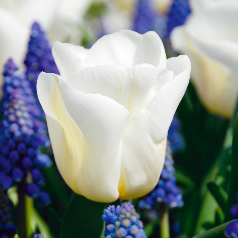 La tulipe Triomphe Calgary est une jolie bulbeuse de 25 cm de hauteur, qui s’épanouit en avril, en dévoilant une floraison en coupe resserrée de 7 cm de diamètre, au coloris blanc pur. Avec sa grande tige bien droite, elle sera sublime en massif ou plate-bande, pour créer une tache de couleur spectaculaire ou pour donner de la hauteur de manière plus diffuse et naturelle à une composition de vivaces de printemps ou de bisannuelles. En grand pot, elle sublimera vos balcons et terrasses en association avec d’autres bulbeuses à floraison printanière comme les muscaris ou les narcisses grande coupe. En vase, cette tulipe Triomphe fera entrer une note de fraicheur printanière dans votre intérieur.