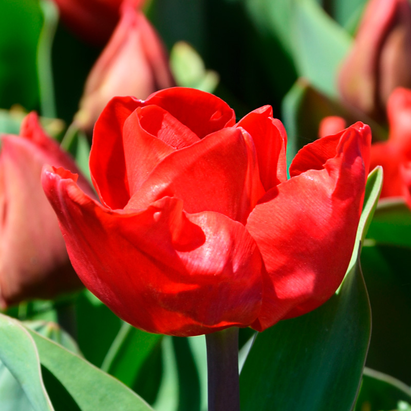 La tulipe Triomphe Escape est une bulbeuse originale de 45 cm de hauteur, qui s’épanouit en avril, en dévoilant une floraison en forme de couronne de 7 cm de diamètre, au coloris rouge brillant.