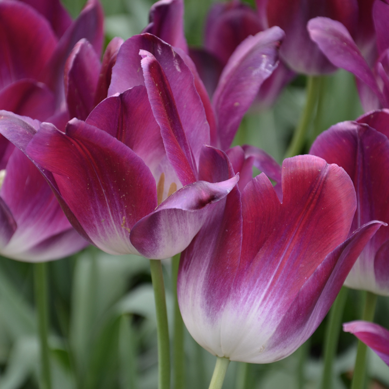 La tulipe Triomphe Kansas Proud est une jolie bulbeuse de 45 cm de hauteur, qui s’épanouit en avril, en dévoilant une floraison en coupe de 7 cm de diamètre. Son coloris est très original avec une base blanche migrant vers le rouge framboise bordé de violet.