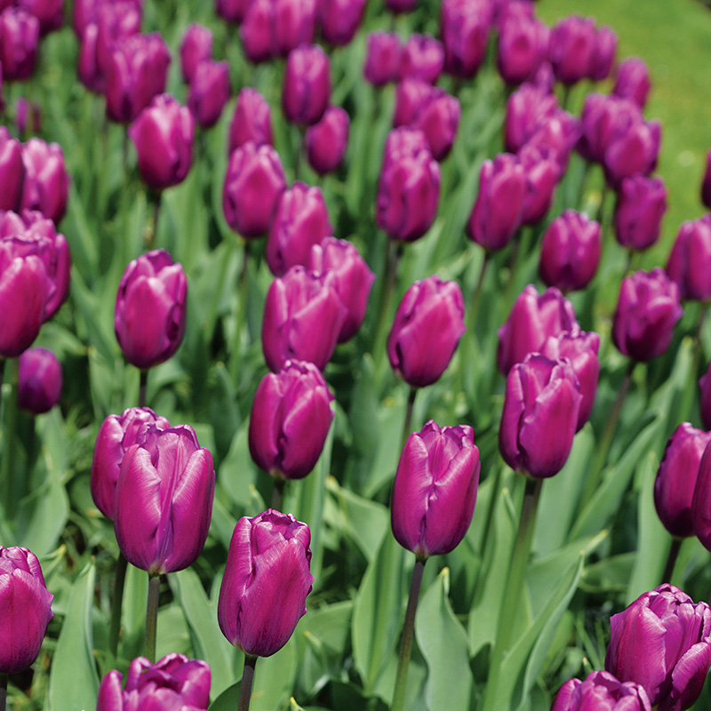 La tulipe Triomphe Purple Flag est une jolie bulbeuse de 45 cm de hauteur, qui s’épanouit en avril, en dévoilant une floraison en coupe resserrée de 0 de diamètre, au coloris violet aux reflets lilacés. Avec sa grande tige bien droite, elle sera sublime en massif ou plate-bande, pour créer une tache de couleur spectaculaire ou pour donner de la hauteur de manière plus diffuse et naturelle à une composition de vivaces de printemps ou de bisannuelles. En grand pot, elle sublimera vos balcons et terrasses en association avec d’autres bulbeuses à floraison printanière comme les muscaris ou les narcisses grande coupe. En vase, cette tulipe Triomphe fera entrer une note de fraicheur printanière dans votre intérieur.