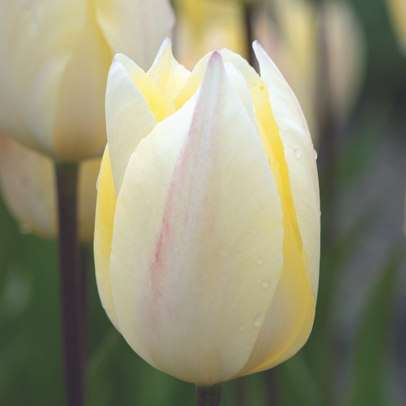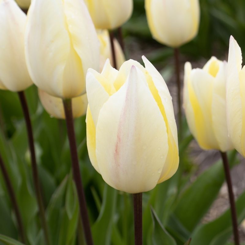 La tulipe Triomphe Yellow Surprise est une jolie bulbeuse de 60 cm de hauteur, qui s’épanouit en avril, en dévoilant une floraison en coupe resserrée de 7 cm de diamètre, au coloris pastel rose clair bordé de jaune. Avec sa grande tige bien droite, elle sera sublime en massif ou plate-bande, pour créer une tache de couleur spectaculaire ou pour donner de la hauteur de manière plus diffuse et naturelle à une composition de vivaces de printemps ou de bisannuelles. En grand pot, elle sublimera vos balcons et terrasses en association avec d’autres bulbeuses à floraison printanière comme les muscaris ou les narcisses grande coupe. En vase, cette tulipe Triomphe fera entrer une note de fraicheur printanière dans votre intérieur.