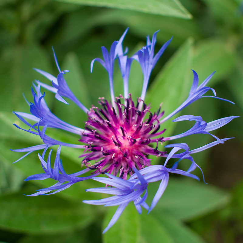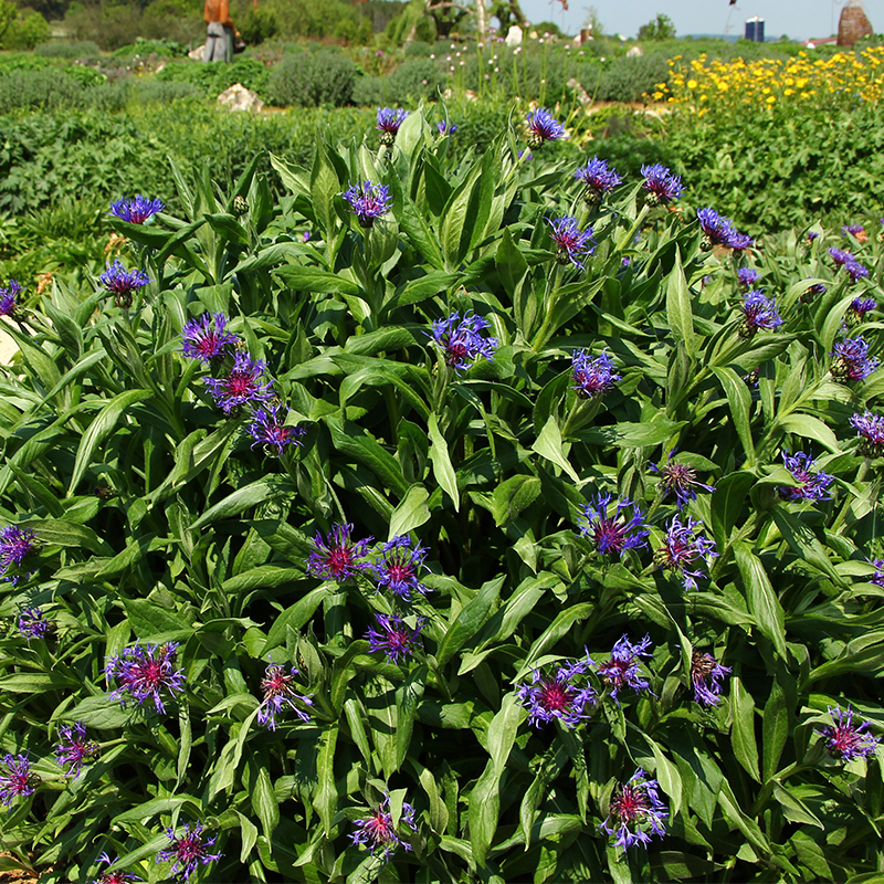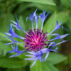 Vivace rustique, aussi appelé Bleuet des Montagnes qui fleurit de juin à aout. Cette variété aux fleurs bleues intenses et au cœur violacé, possède un feuillage fournit et à peine duveteux.